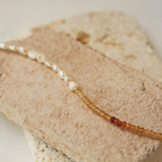 ホワイトホタルガラス×天然石チェーンブレスレット/14KGF