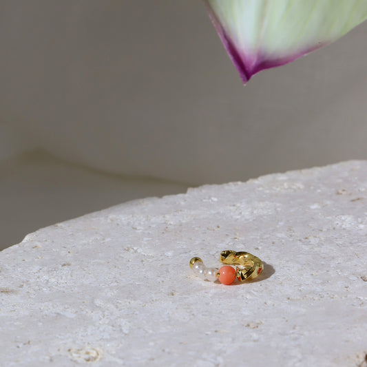 Ausverkauft地中海珊瑚 ダブルフープイヤーカフ