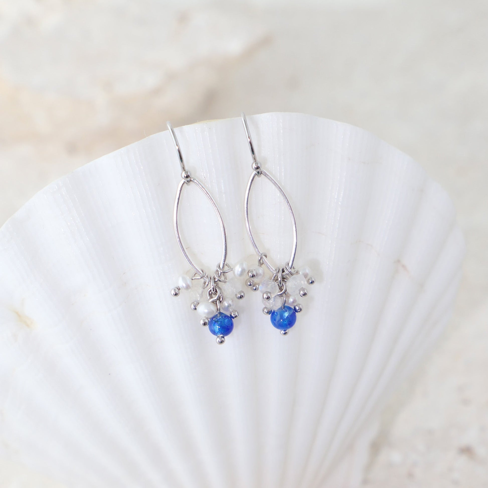 シンプルなマーキスフープに3種の異なる輝きが映えるピアス。