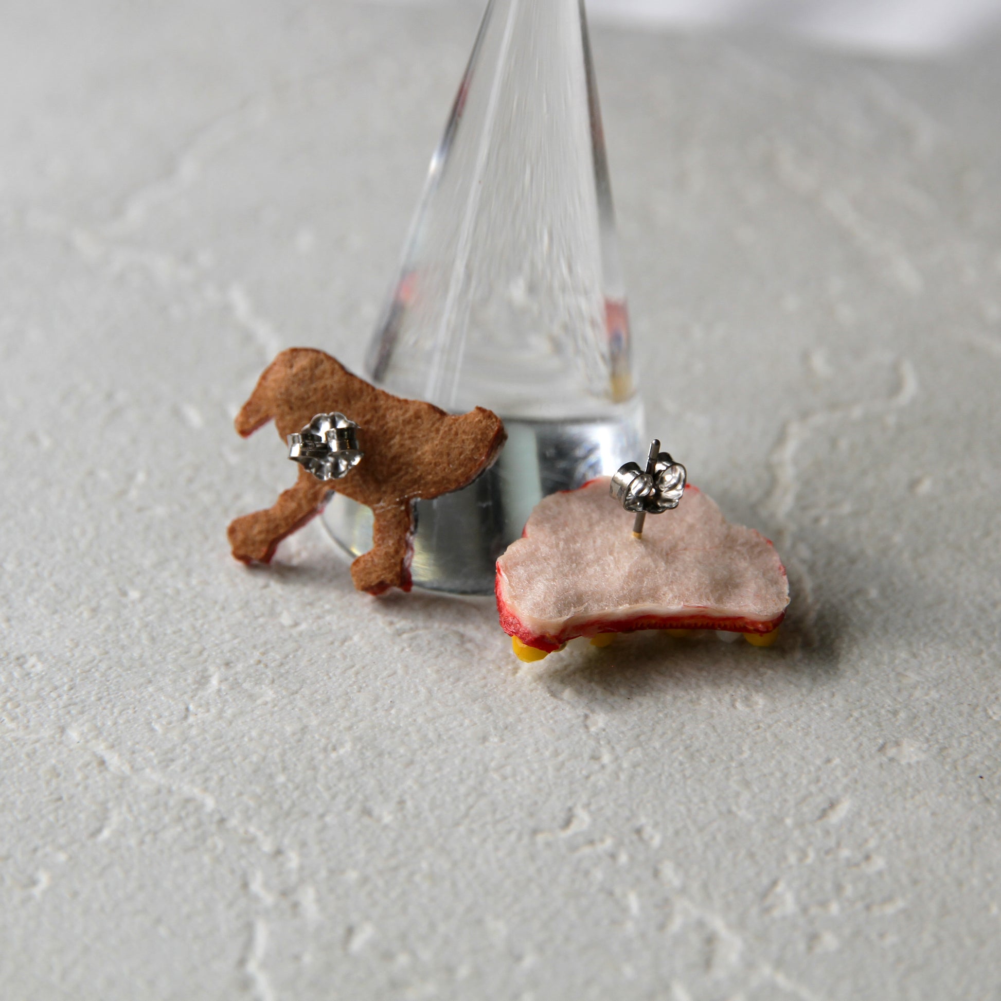 刺繍で沖縄の彩りを表現し、ユーモアに仕上げたオリジナルピアスシリーズ。ヤンバルクイナと沖縄モチーフの花笠を片方ずつ、可愛いだけでなく気分も上げてくれるような彩り。