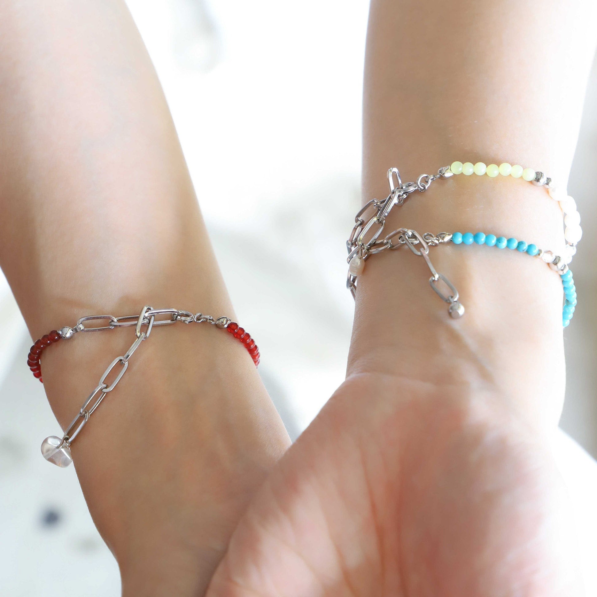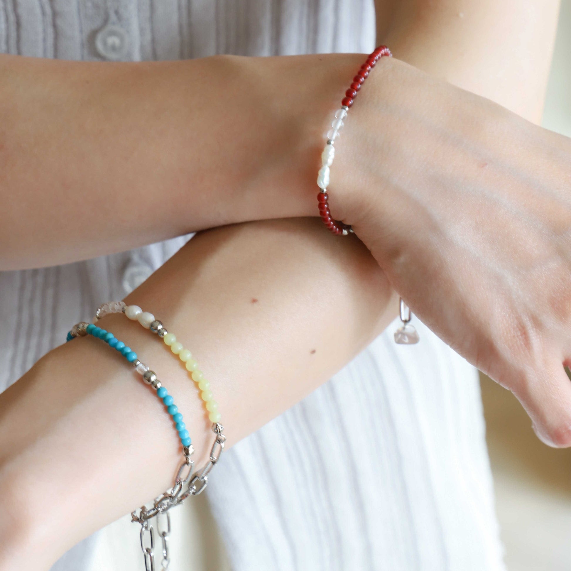 珊瑚、天然石は自然の素材です。珊瑚は、赤みが強いものや白みが強いものなど個体差があります。天然石も含め、自然物ゆえの色合いや形などが1つ1つ異なるということをご了承ください。水や汗、直射日光、急激な温度変化に弱いため着用後の保管にご注意ください。