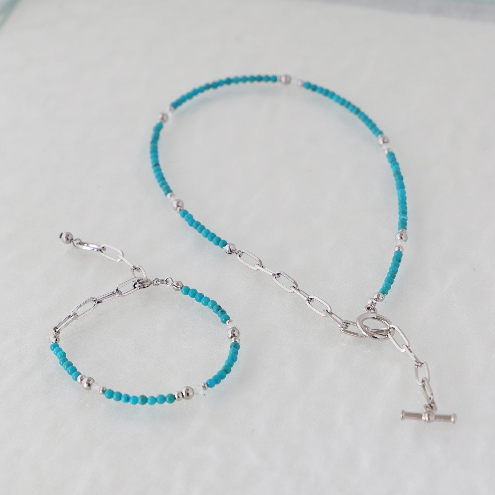 blue:ターコイズ、水晶、真鍮ロジウムメッキパーツ