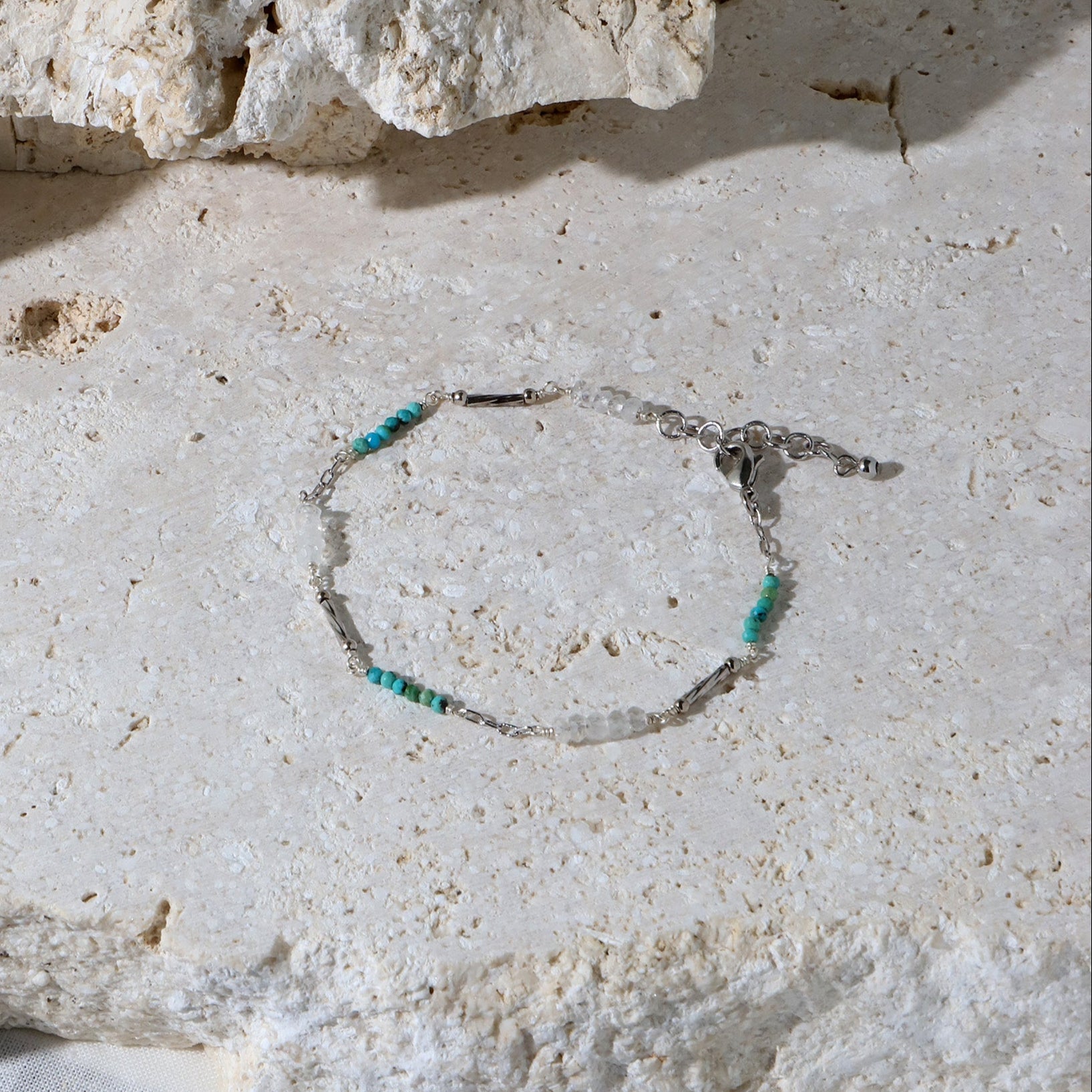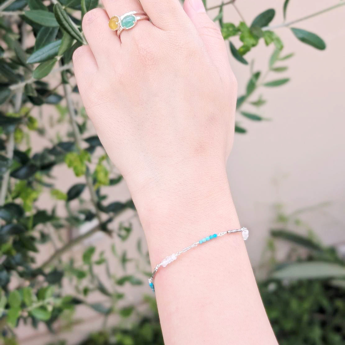 [素材] ターコイズ、ムーンストーン、真鍮ロジウムメッキパーツ