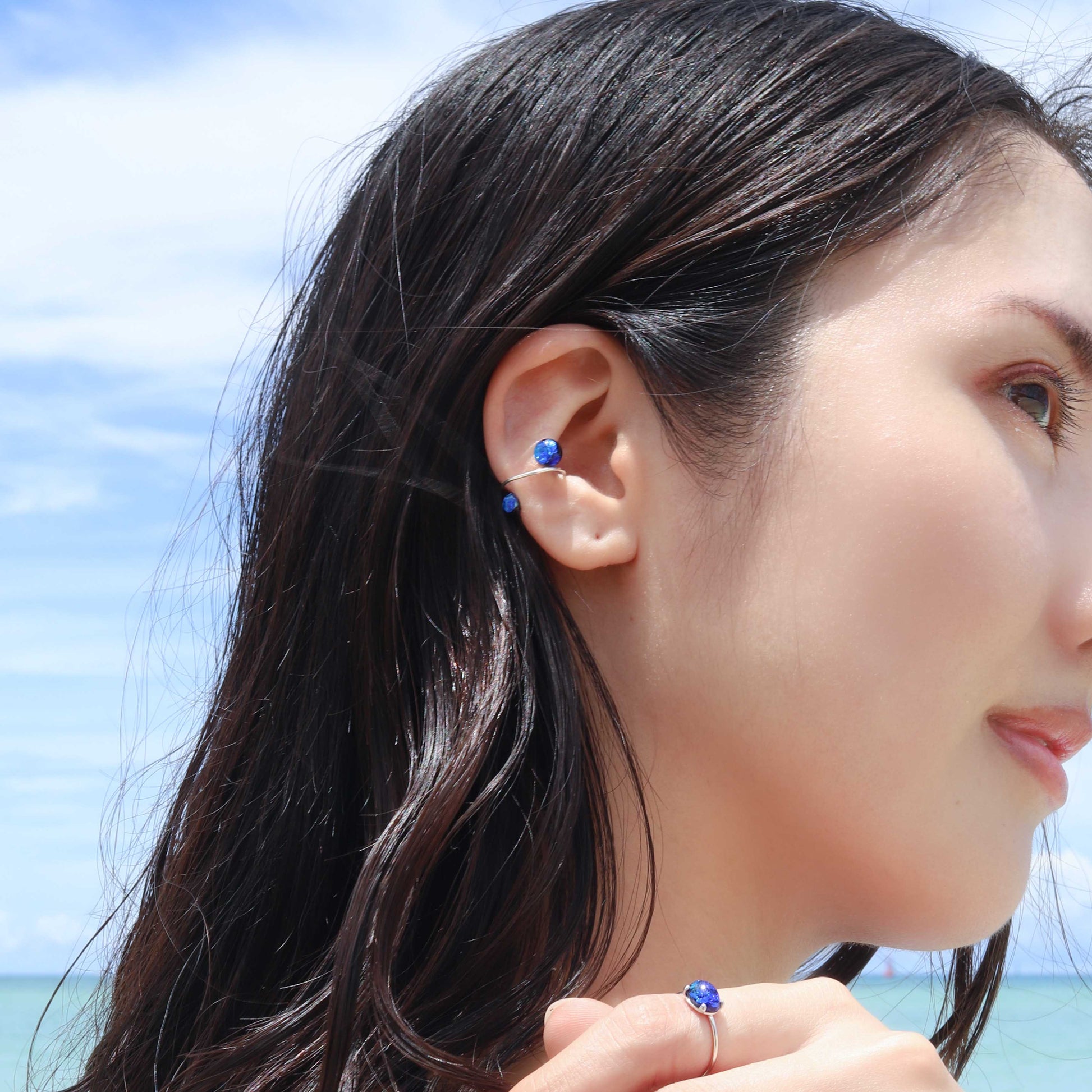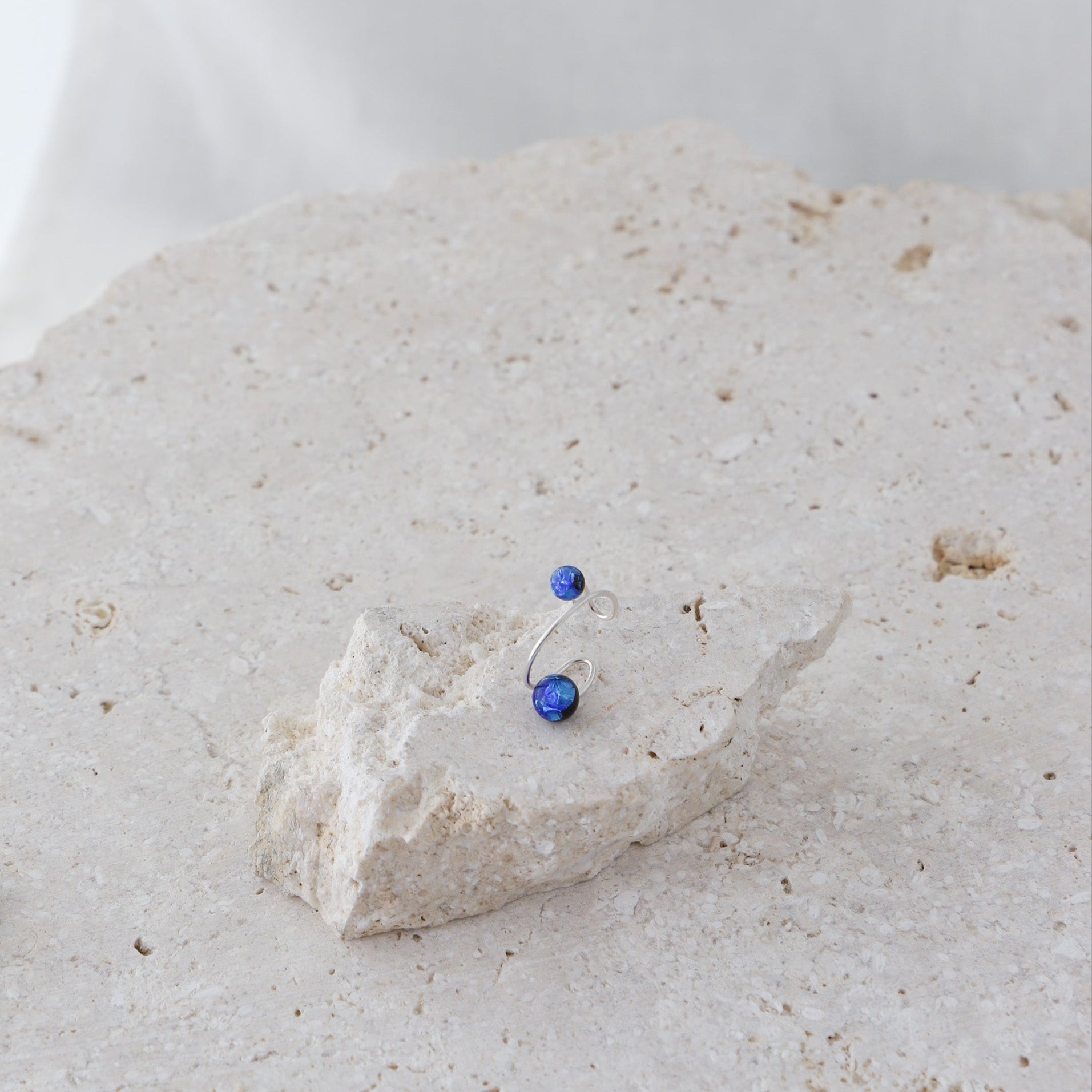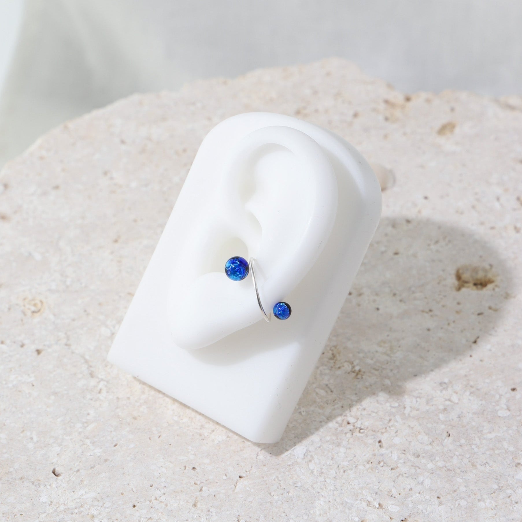 サイズの異なるホタルガラスをあしらった小ぶりでさりげない存在感のあるイヤーカフ。