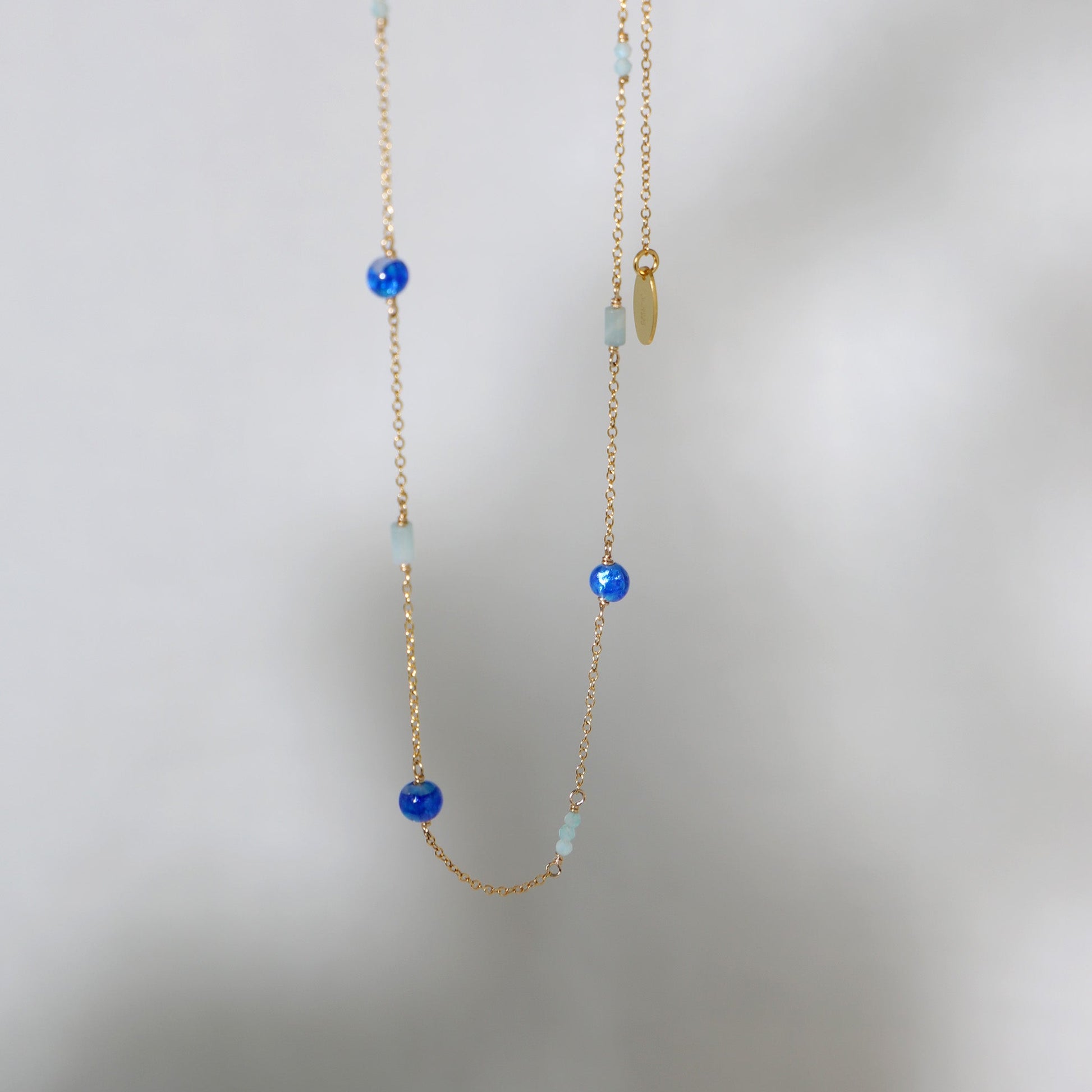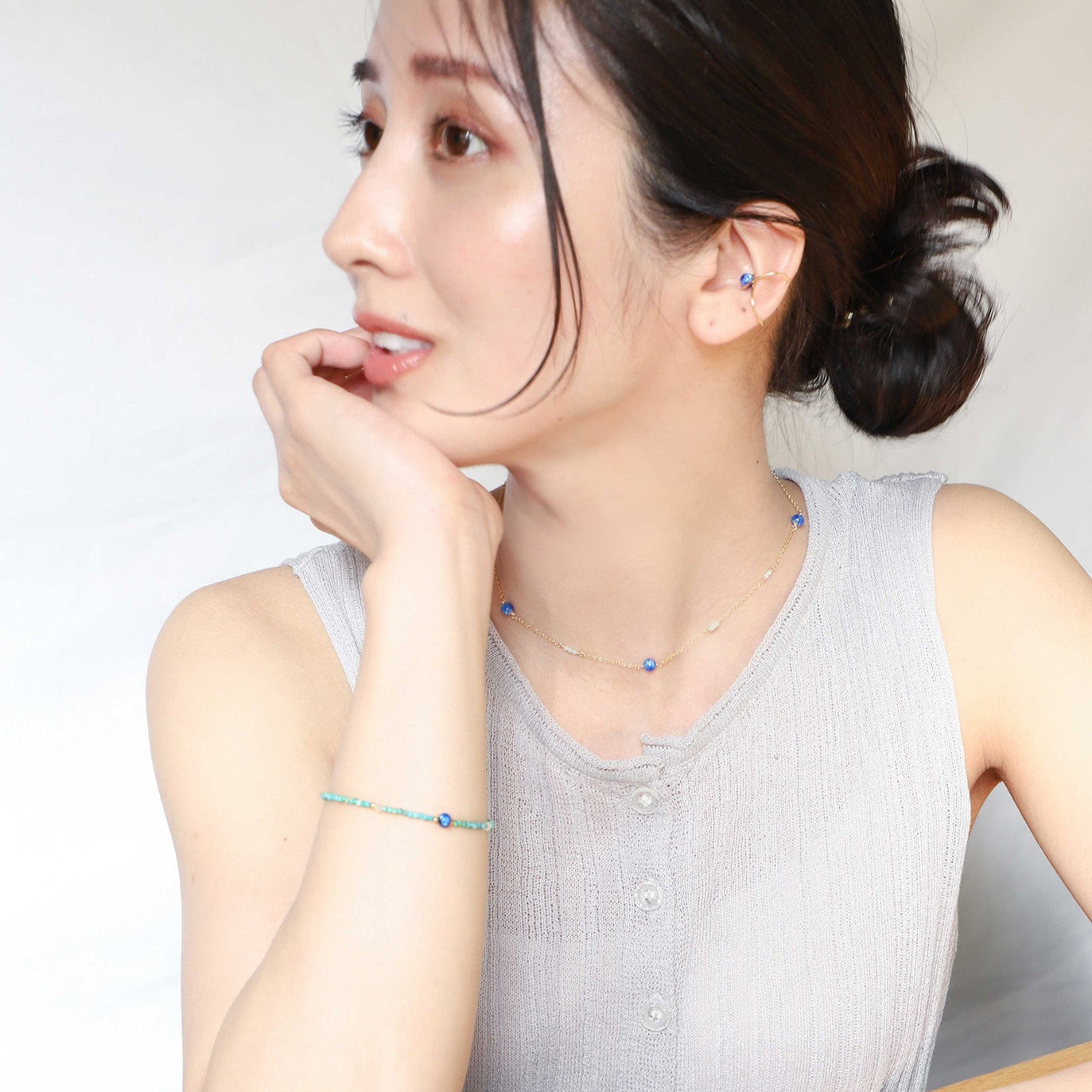 夏らしい色合いのストーンが胸元に優しくきらめきます。