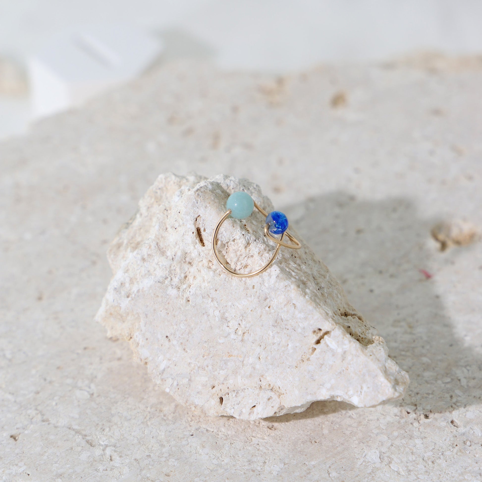 ホタルガラス アマゾナイト ウェイブイヤーカフ /14KGF