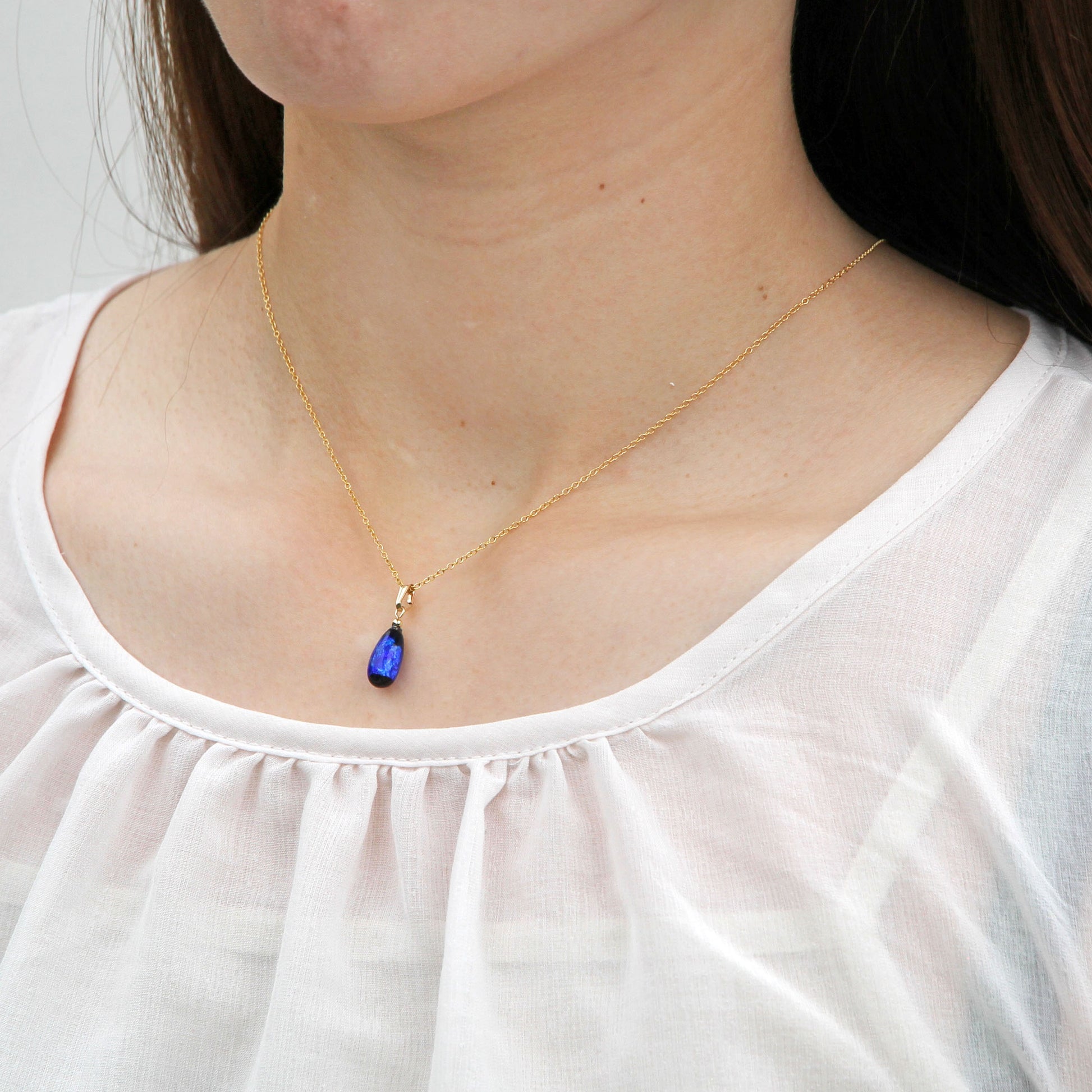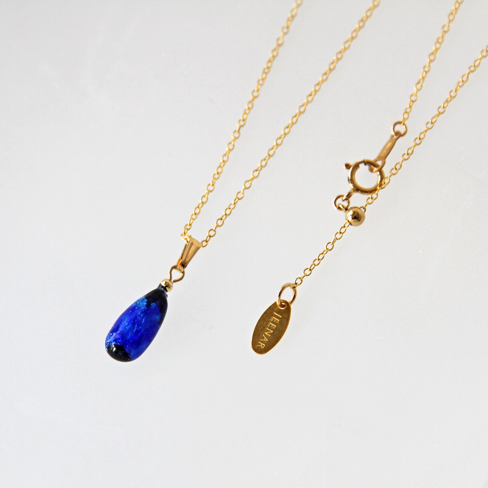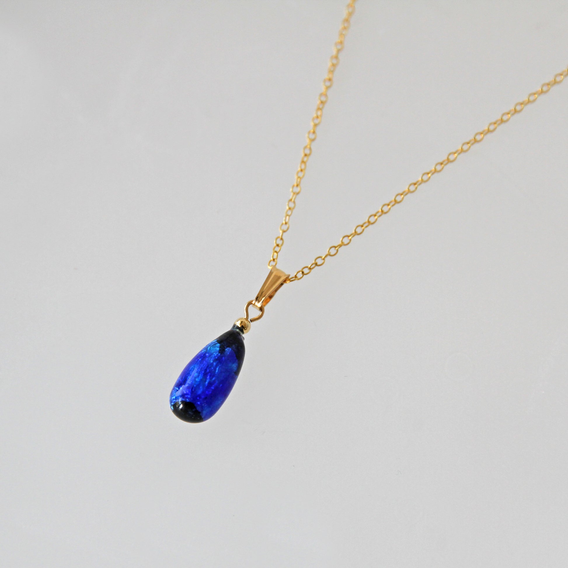 しずく型ホタルガラスを使用したシンプルなペンダント。ホタルガラスの深い青が大人上品に魅せてくれます。