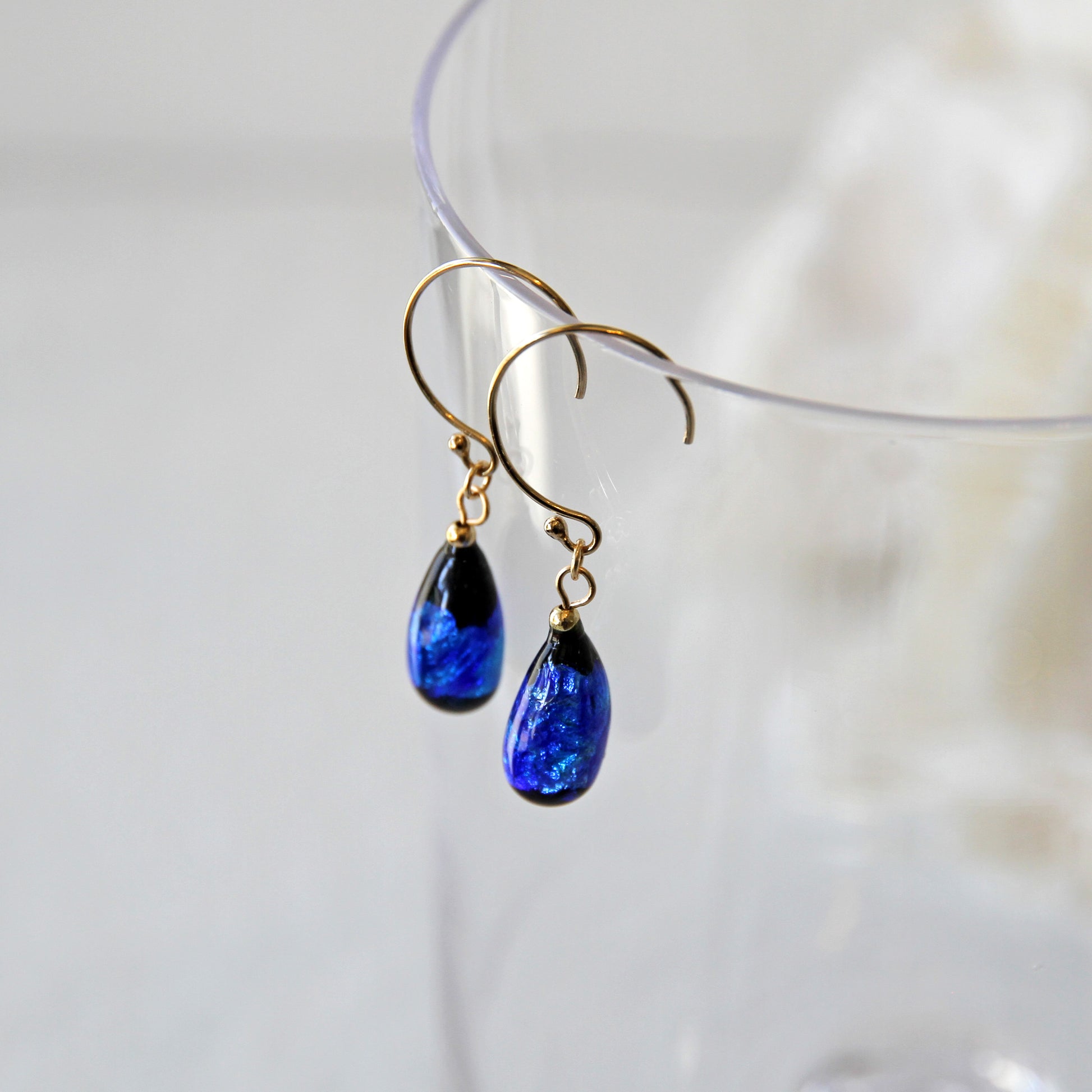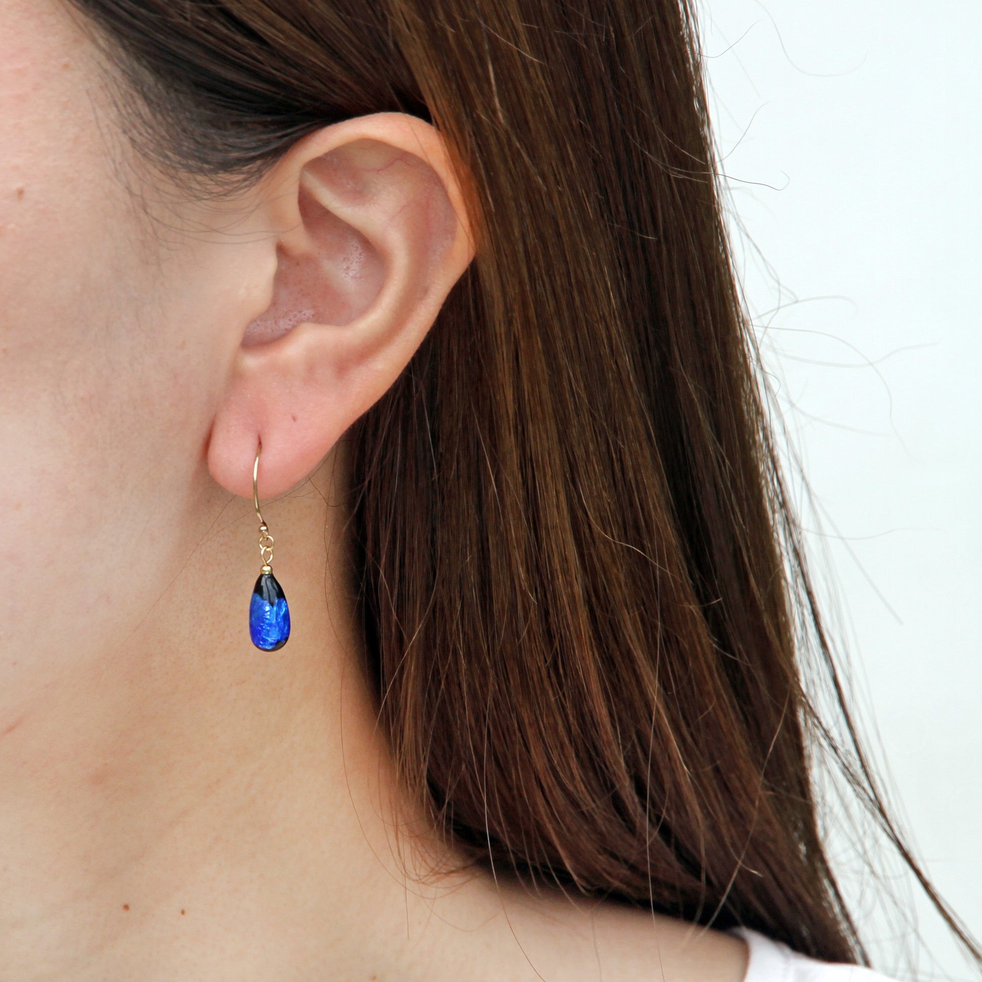 シンプルなしずく型のホタルガラスに丸フックを組み合わせることで、上品ながらも可愛らしい雰囲気に。