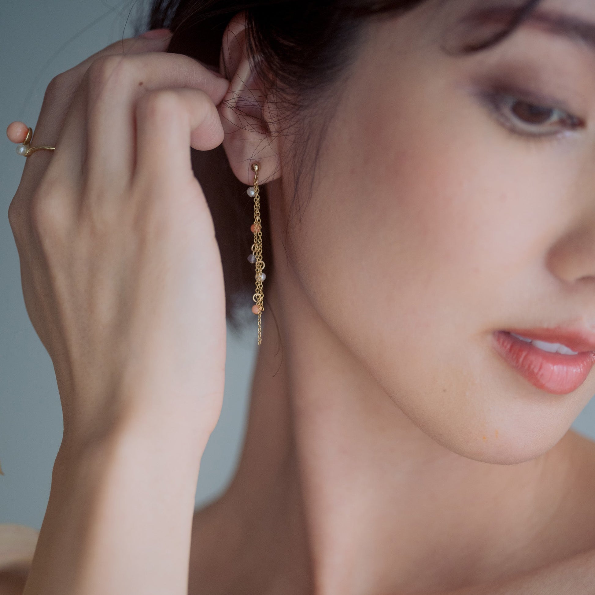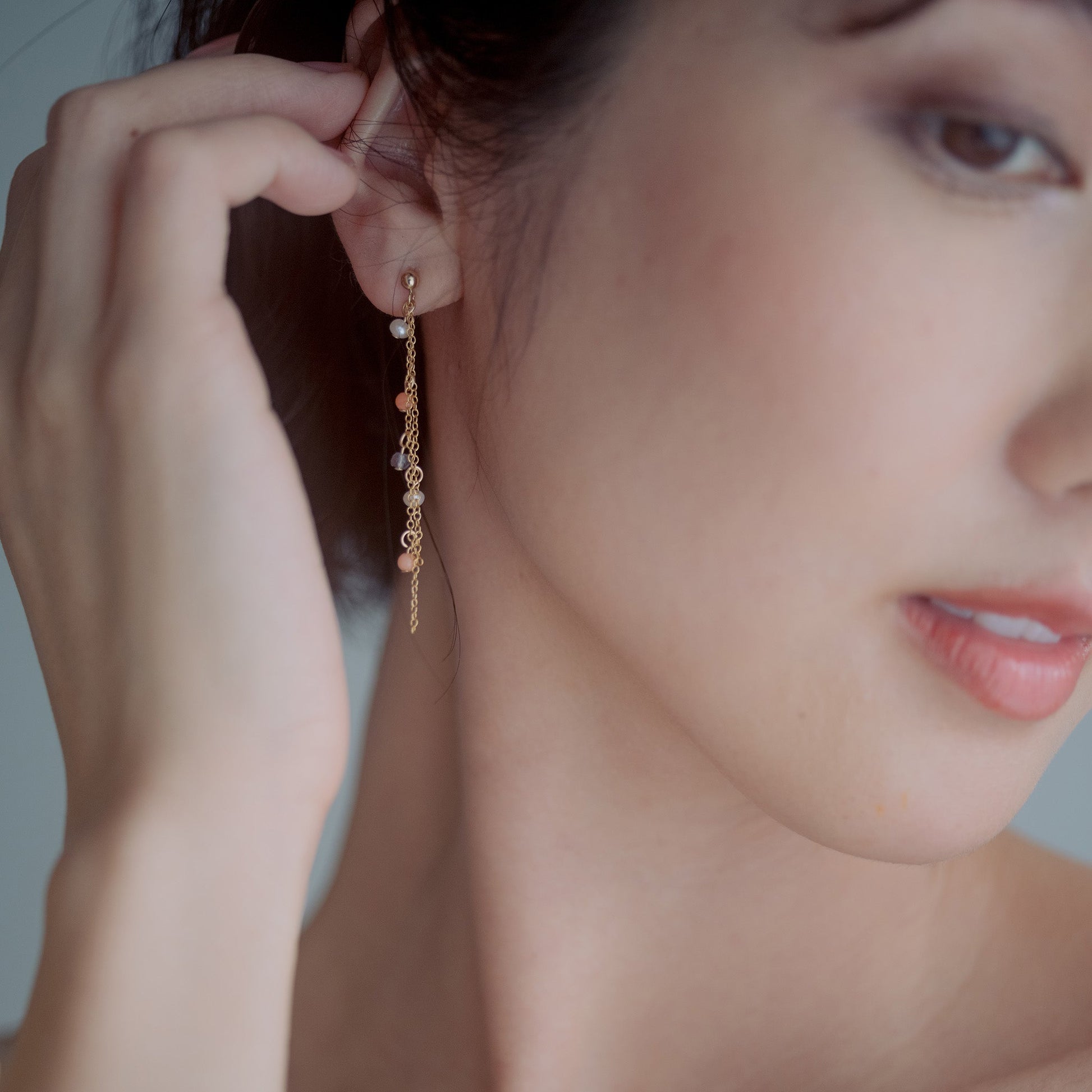 深海珊瑚 スパークルチェーンピアス /14KGF