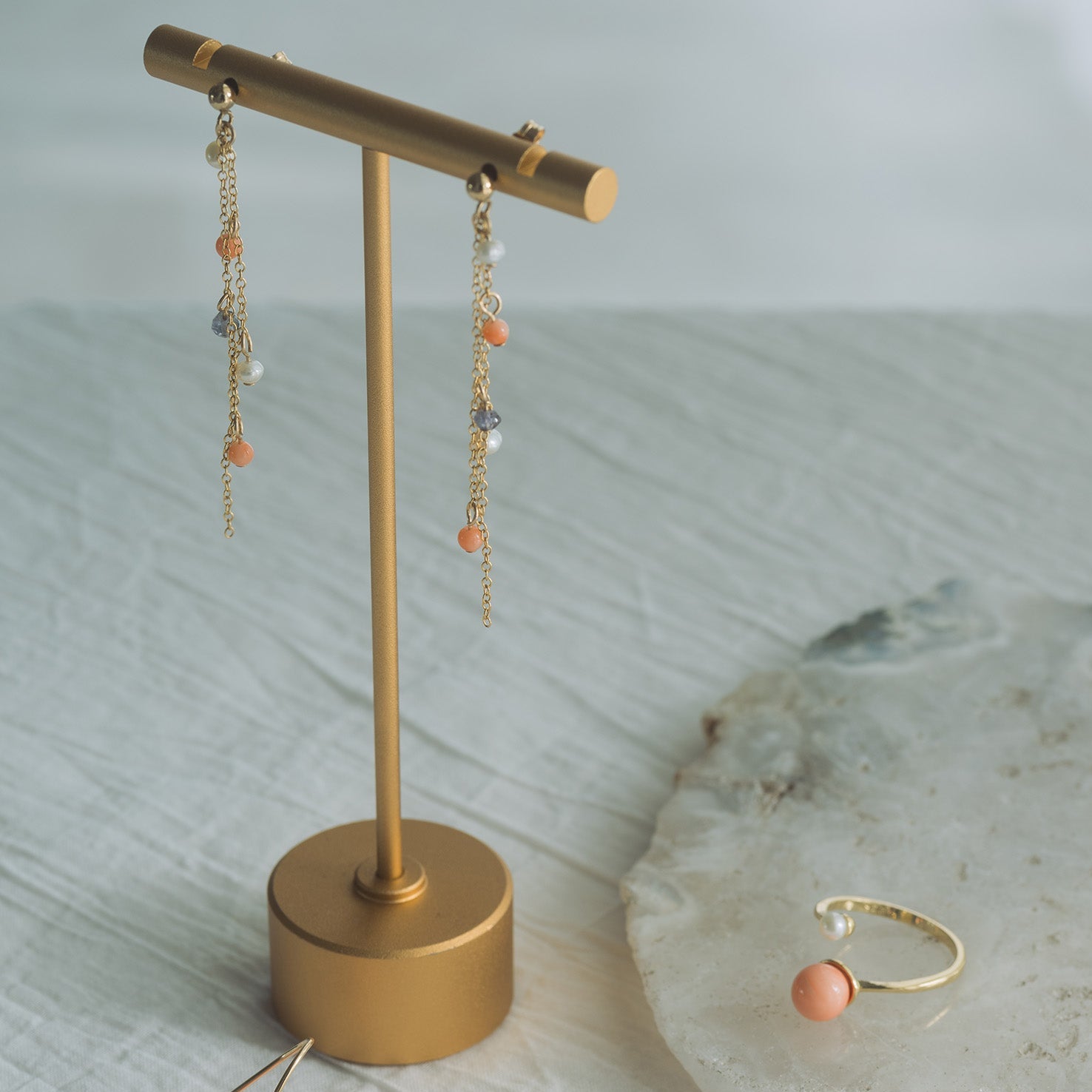 珊瑚、天然石は自然の素材です。珊瑚は、赤みが強いものや白みが強いものなど個体差があります。天然石も含め、自然物ゆえの色合いや形などが1つ1つ異なるということをご了承ください。水や汗、直射日光、急激な温度変化に弱いため着用後の保管にご注意ください。