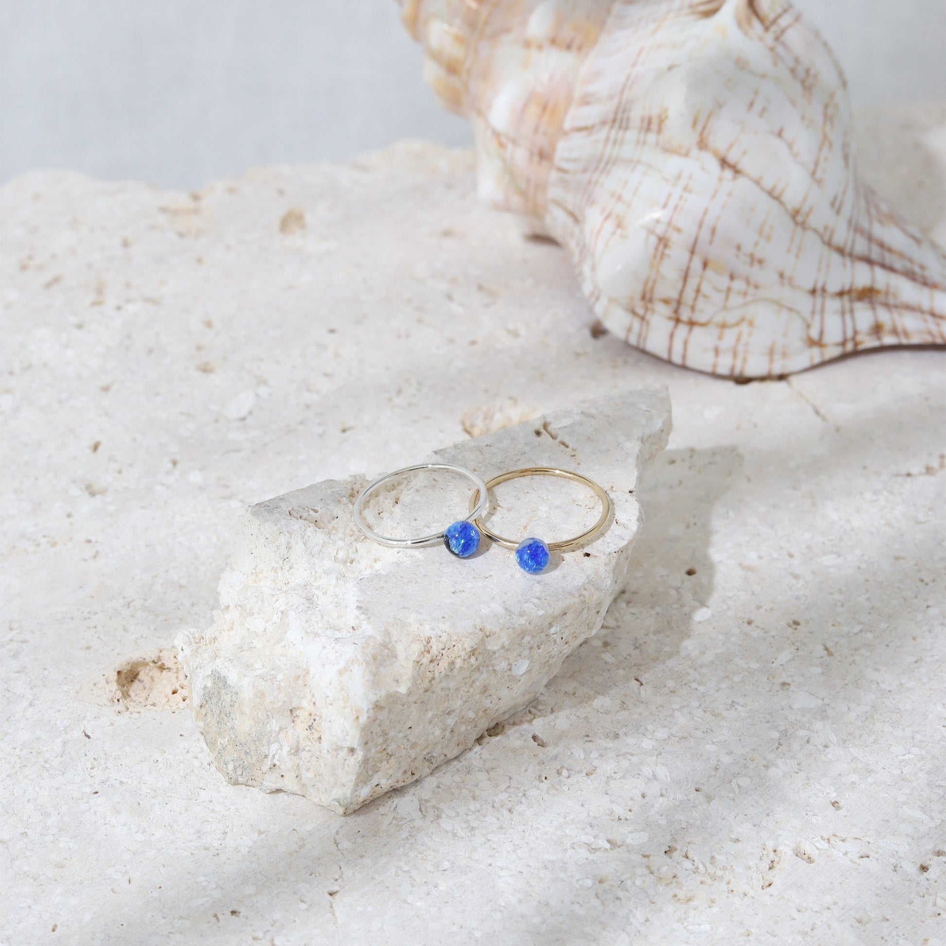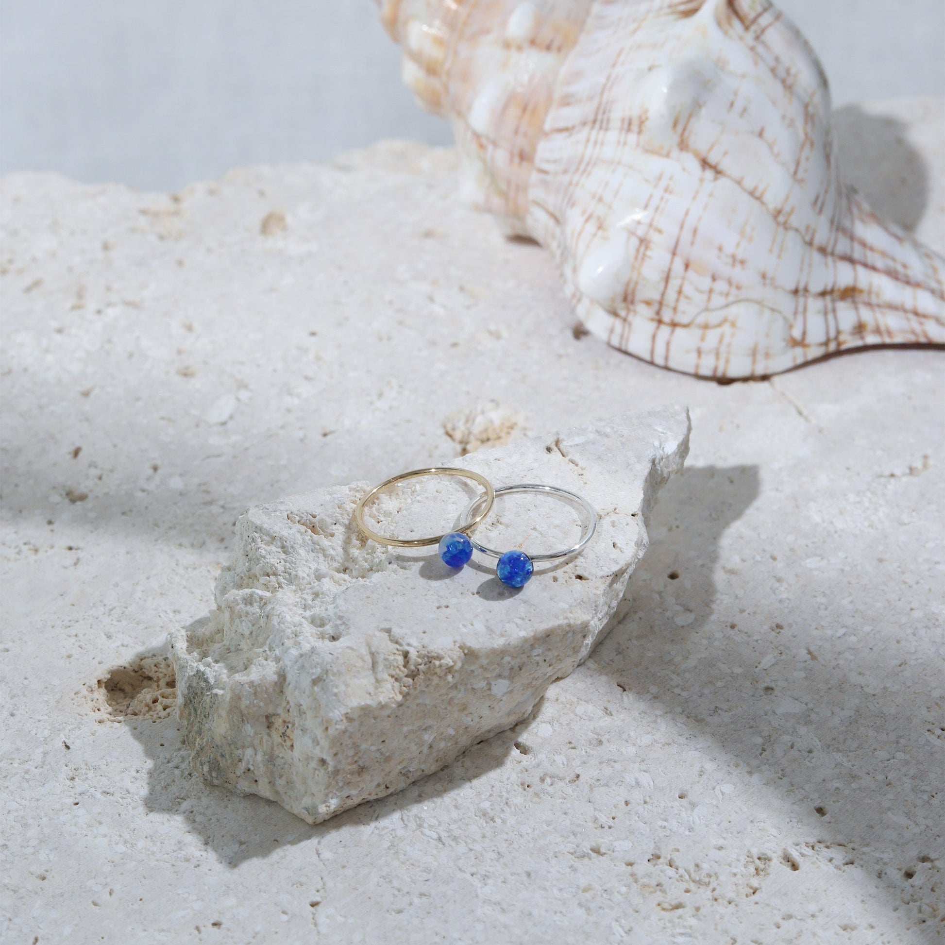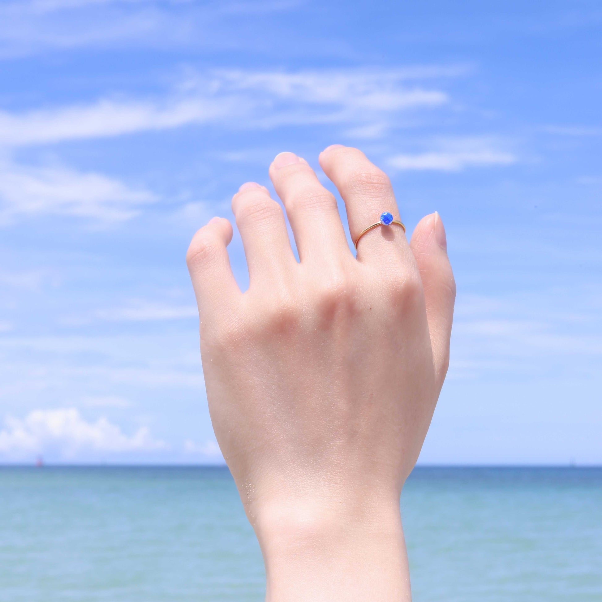 小ぶりのホタルガラスがさりげなく輝くシンプルなデザインのリングは、指元に涼やかなアクセントを添えてくれます。