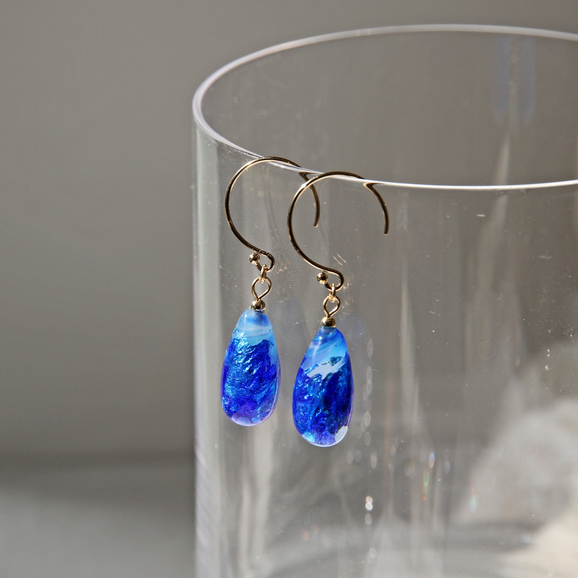 물방울 모양 화이트 반딧불 유리 원형 후크 귀걸이 / 14KGF