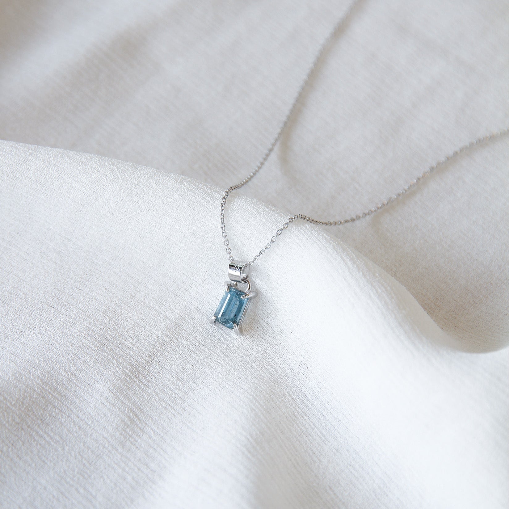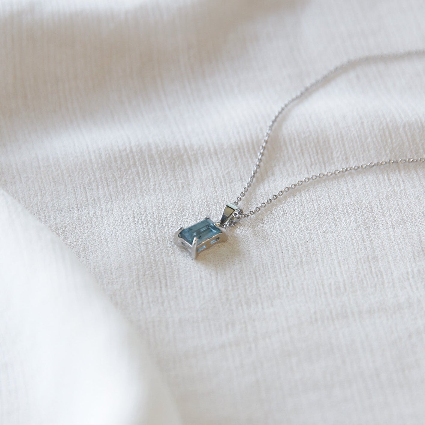 カイヤナイトの深いブルーの輝きが胸元で静かに輝くシンプルな一粒ネックレス。