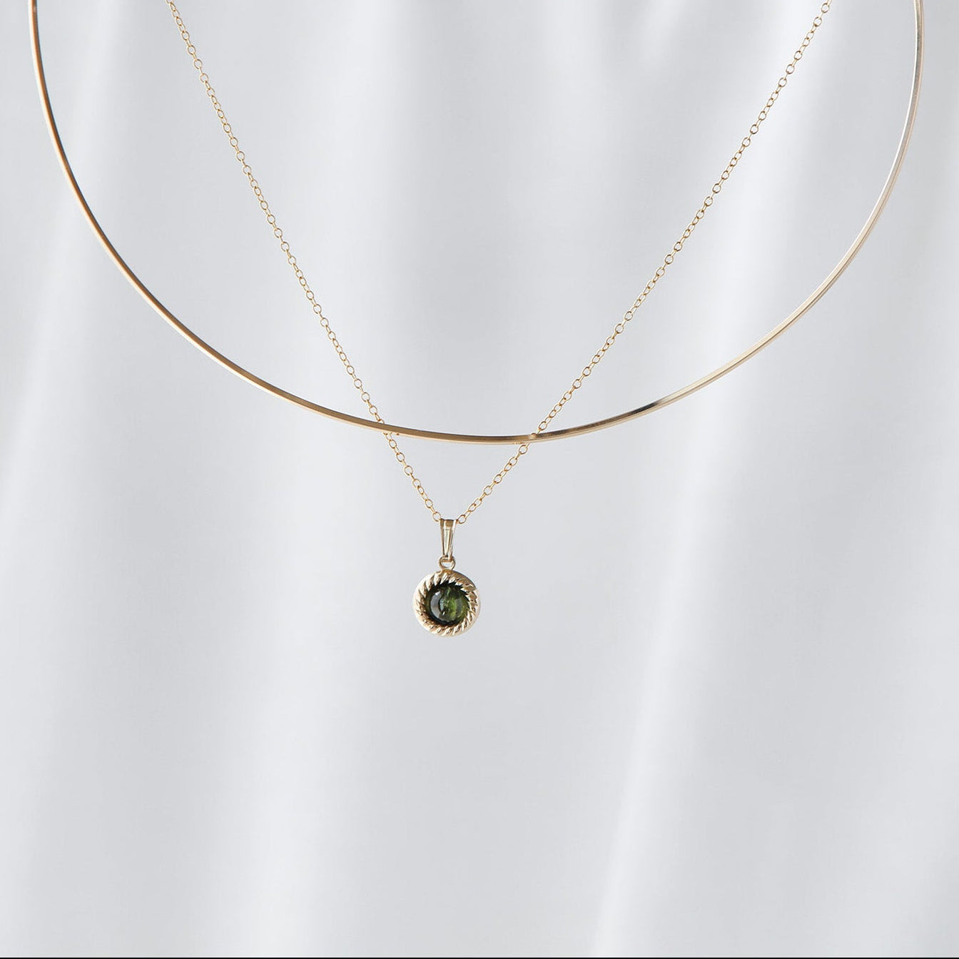 K14GFのワイヤーチョーカーを重ね付けすることで、トルマリンの輝きをより引き立ててくれます。