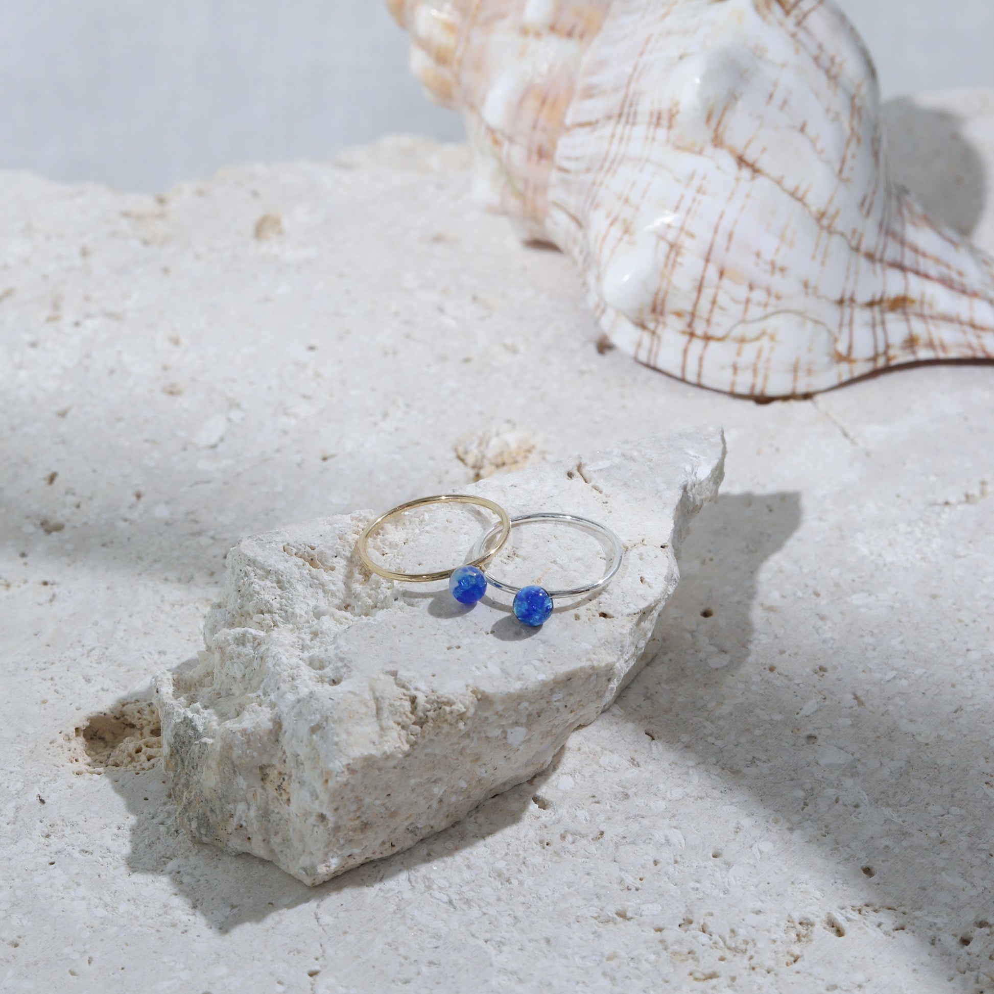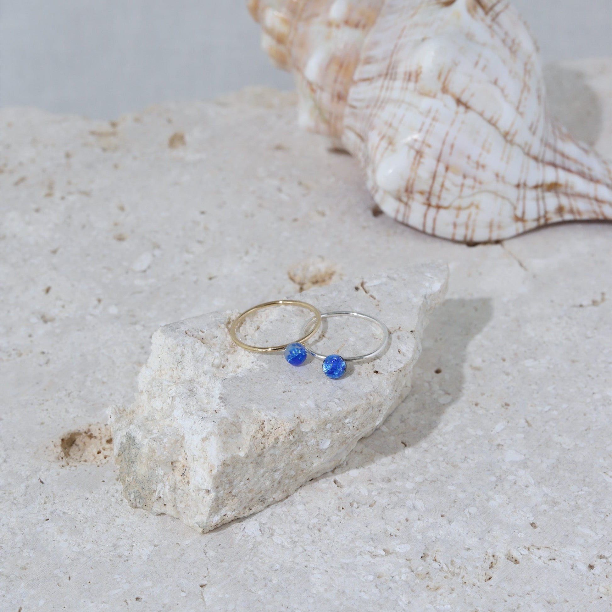 小ぶりのホタルガラスがさりげなく輝くシンプルなデザインのリングは、指元に涼やかなアクセントを添えてくれます。
