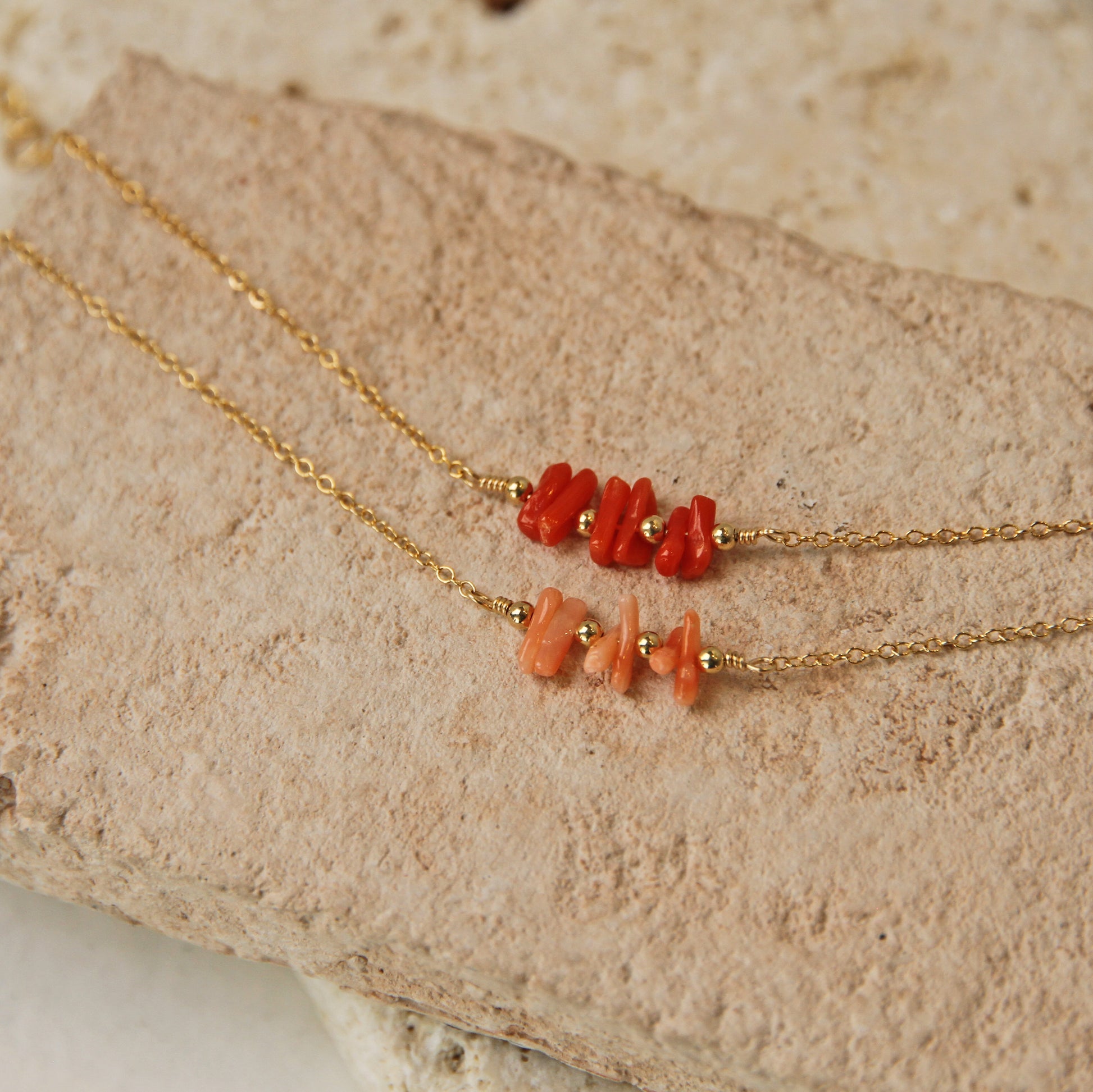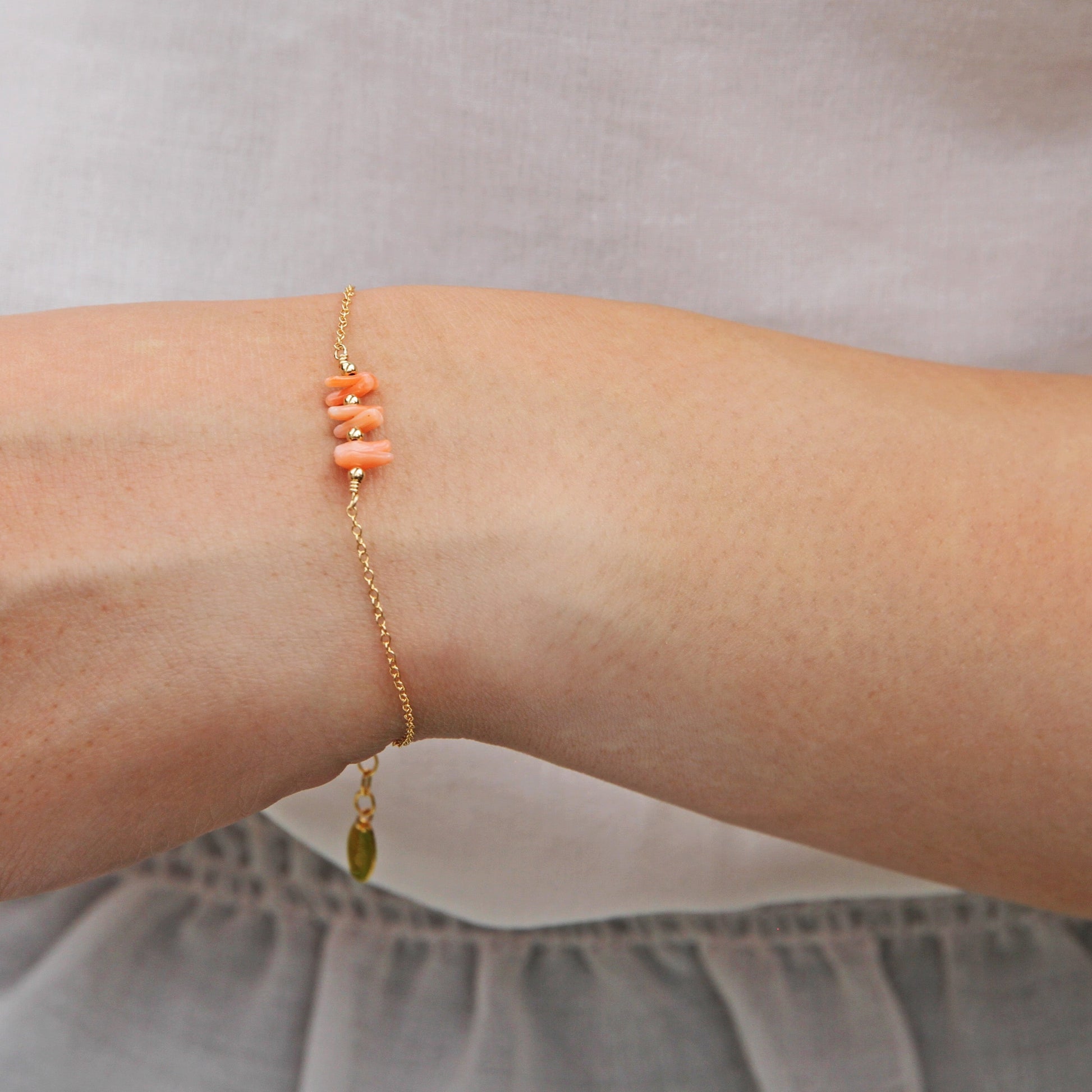 華奢なチェーン×深海珊瑚が大人可愛いブレスレット。