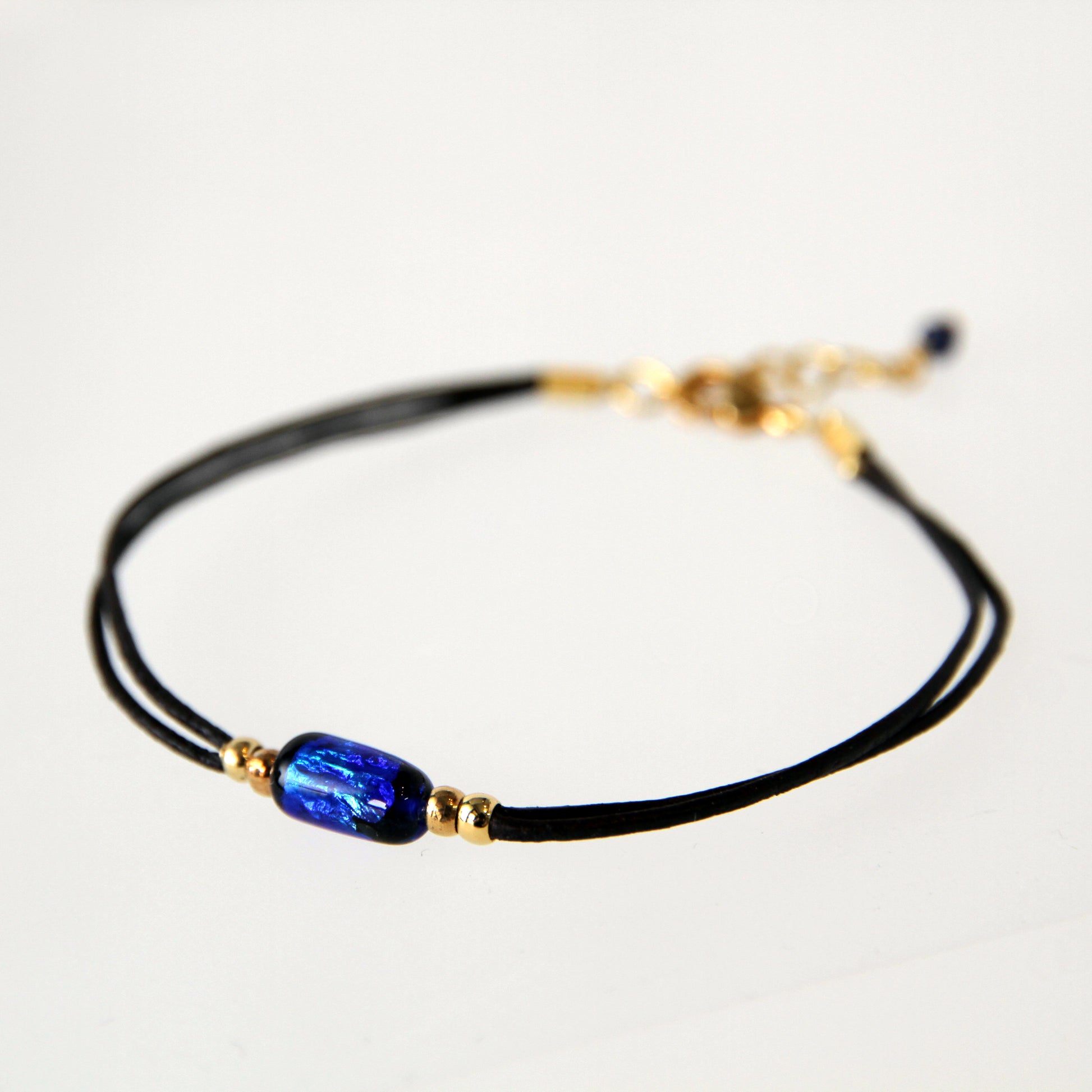 円柱ホタルガラスと本革コードを合わせたブレスレット。