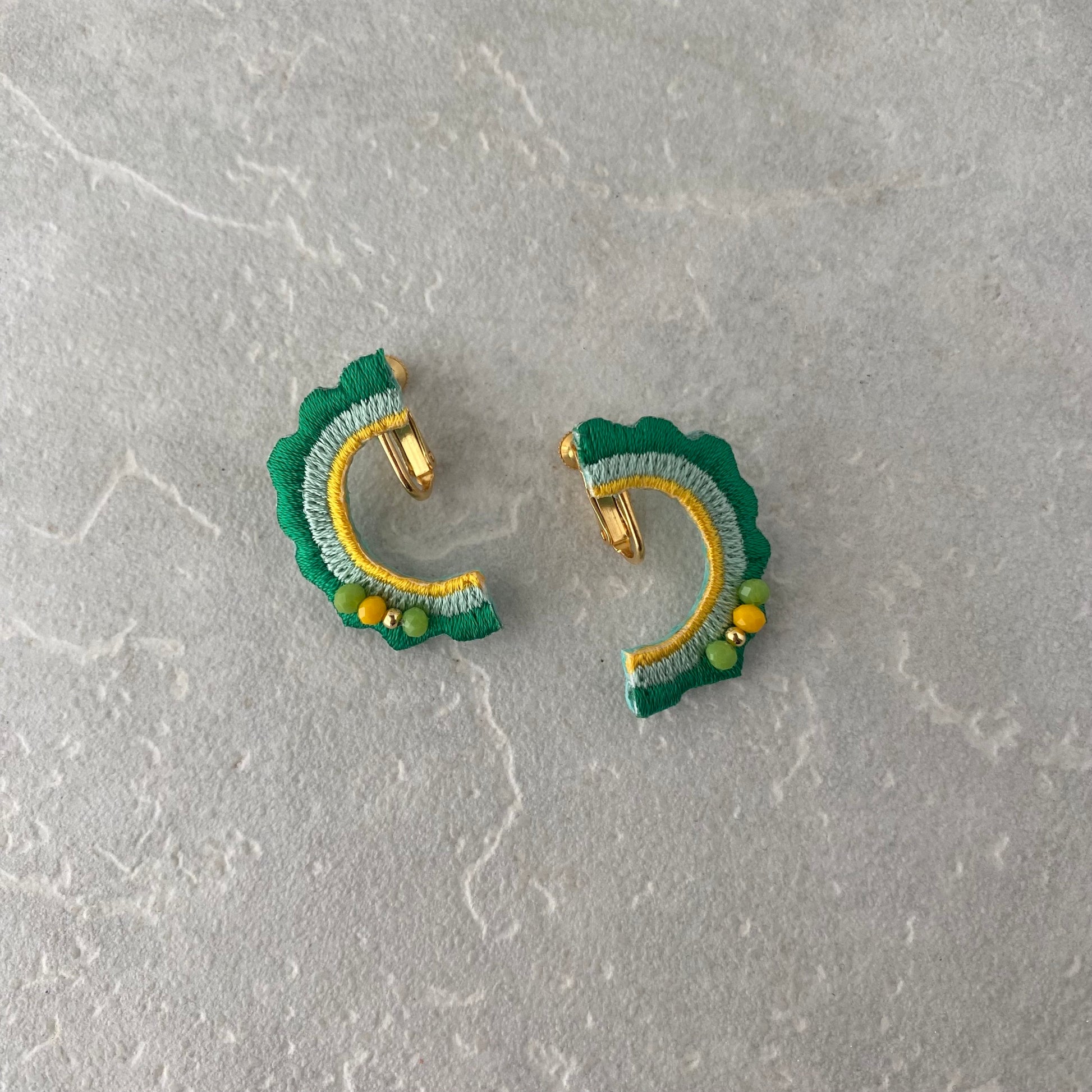 刺繍イヤリング ゴーヤー